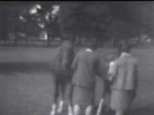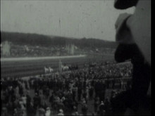 1928 George V, The King arriving at the Ascot races, Royal coach and horses drive along the course. Stephen de Laszlo and others