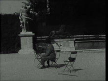 1928 Philip and Lucy de László at The Palace of Versailles. Philip de László painting the statue of Diana and the Dordogne statue at the Parterre d'Eau