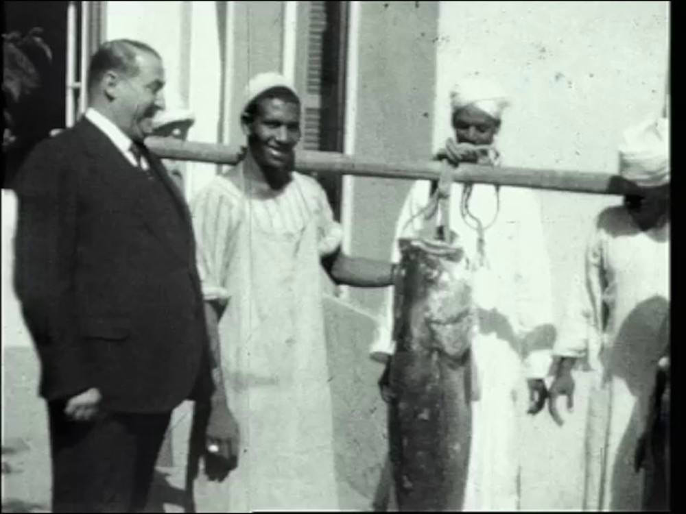 1929 Maitre d'hotel, hotel staff with Nile fish at the Grand Hotel, Assouan