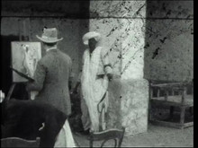 1929 Philip de László painting a Bisharin warrior with Police Officer looking on