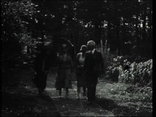 1929 Mr and Mrs Proctor and their niece walking through the woods with Philip de László and Lucy, their son Henry and Pekingese Yang at Littleworth