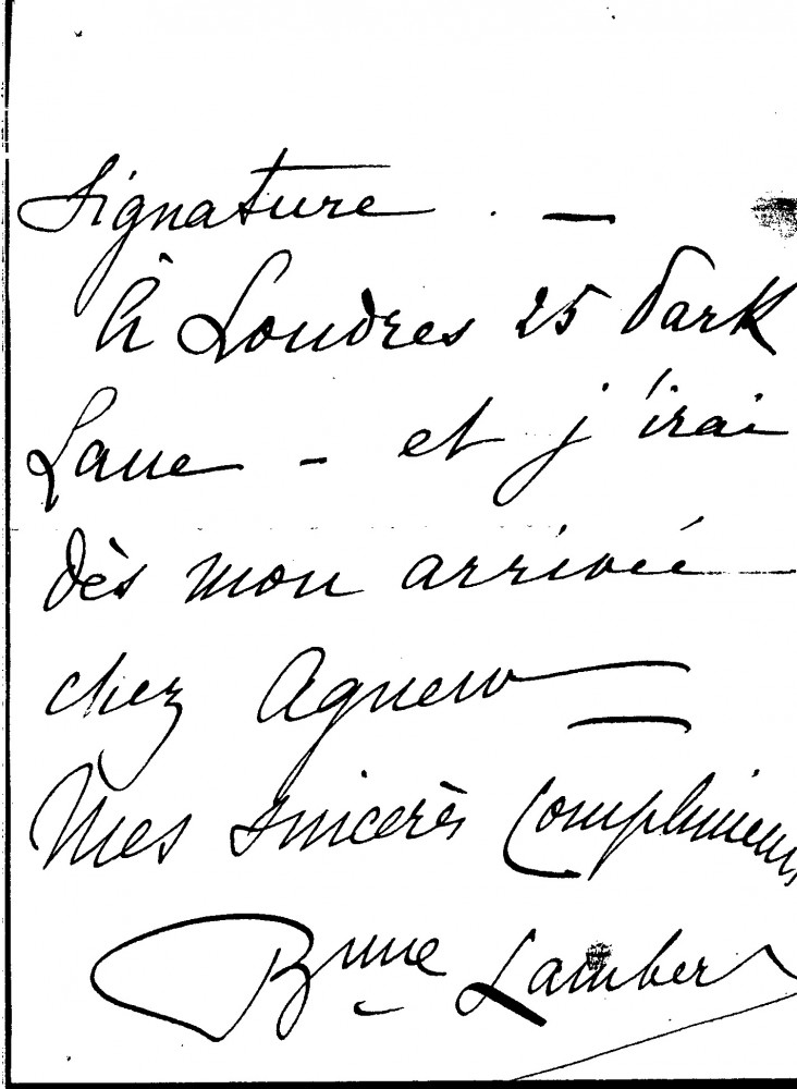 Letter from Baroness Lambert to de László thanking the artist in advance for adding his signature to an album
