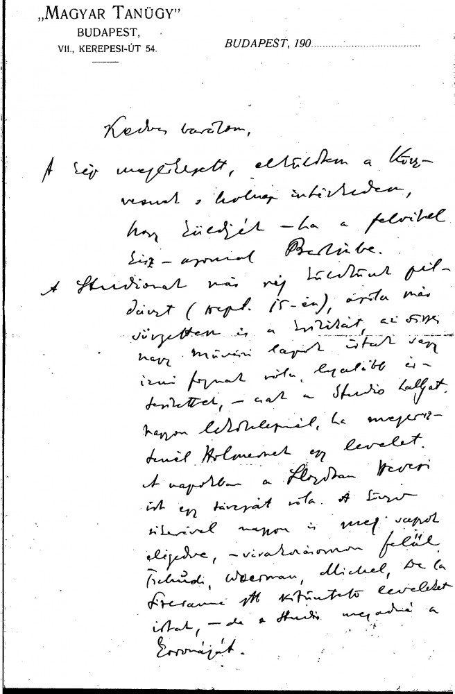 Undated letter from Béla Lázár to de László (possibly dating to 1904 [see accompanying "Editorial Note"]) in which Lázár appeals to de László to contact Charles Holme of The Studio as he would like his recent László Paál publication to be favourably reviewed (this item was previously archived with DLA009-0008)