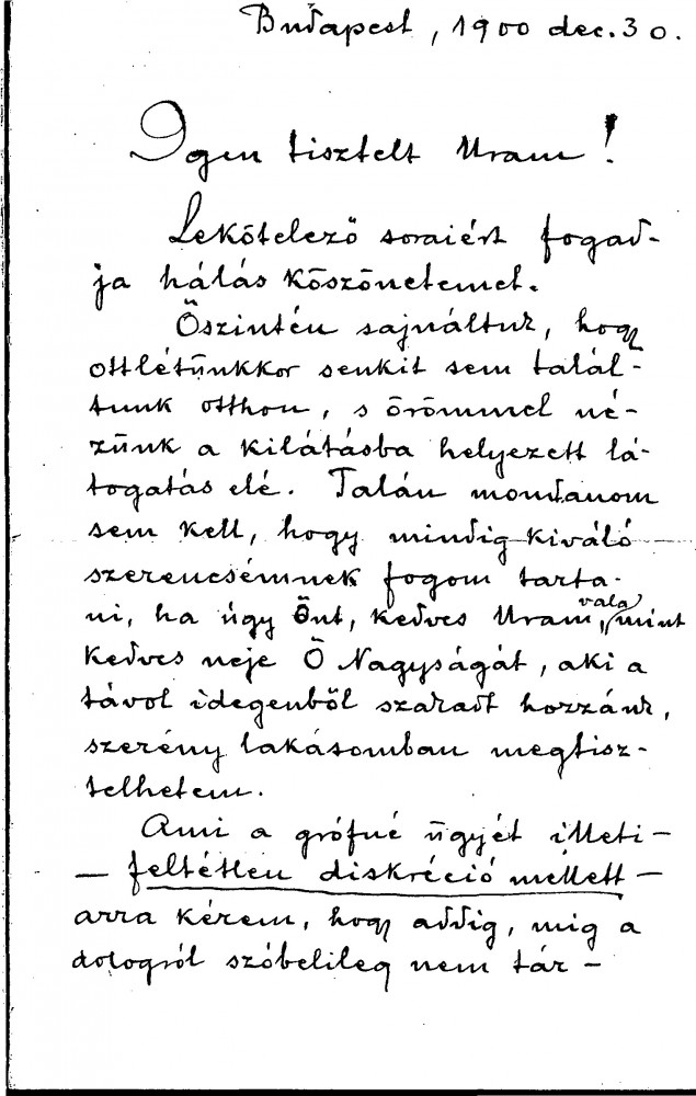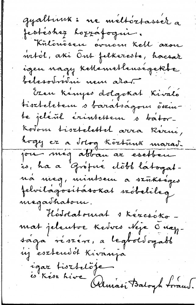 Loránd Almási Balogh asks de László not to start painting the Countess until they can discuss the matter verbally; he warns de László against a gentleman who paid him a visit