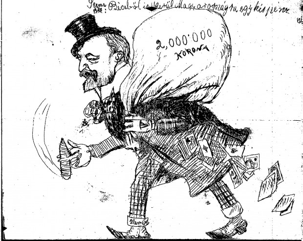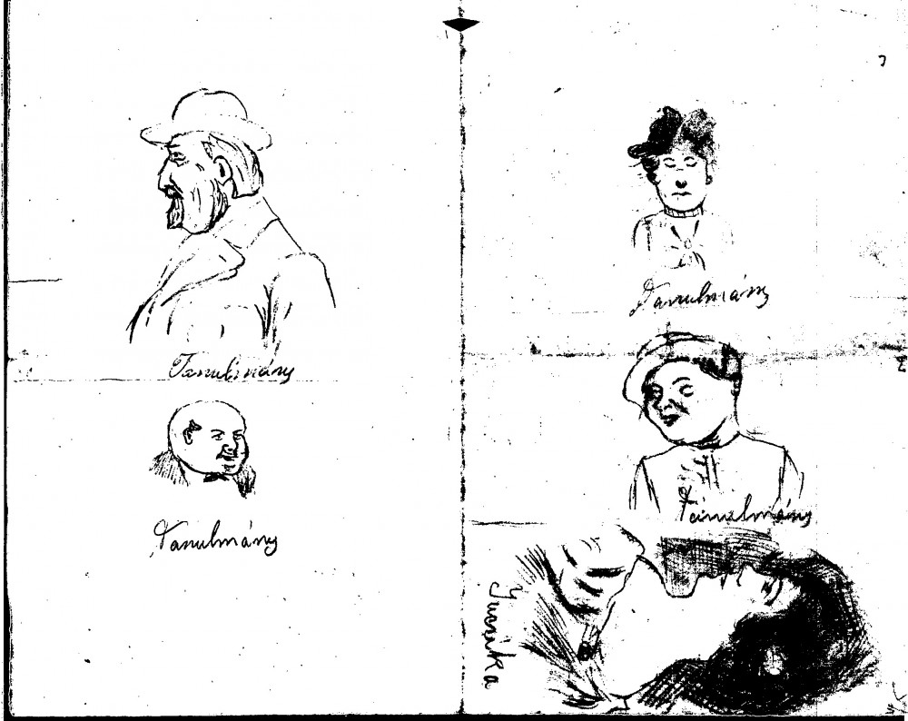 Drawing Inscribed “A bit of money comes to Hungary from Vienna too”. “Study” is inscribed under each drawing on a second sheet, with the last drawing inscribed “Jucika”, a pet name for Judith
