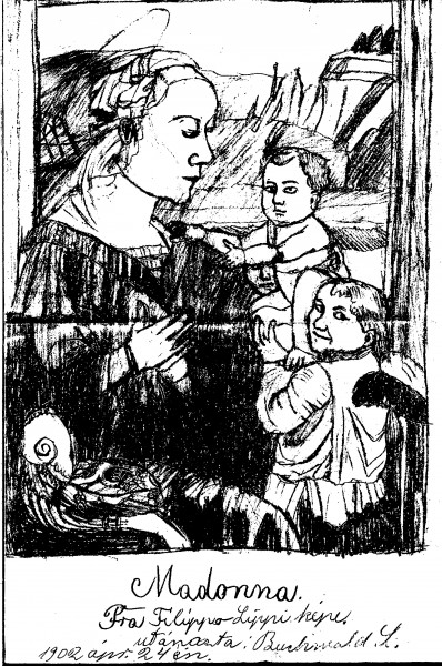 Drawing inscribed “Madonna, by Fra Filippo Lippi, copied by L. Buchwald 24th April 1902