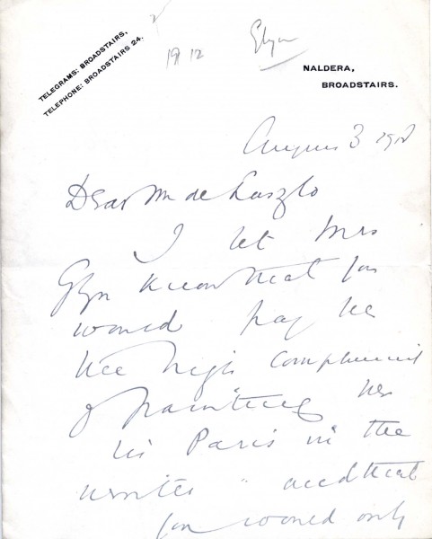 Letter from Lord Curzon to de László, Correspondence belonging to Christopher de Laszlo - Collection I, 123-0004