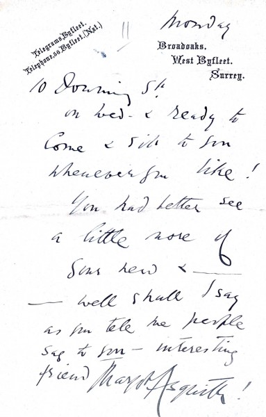 Letter from Margaret Asquith to de László, Correspondence belonging to Christopher de Laszlo - Collection I, 123-0010