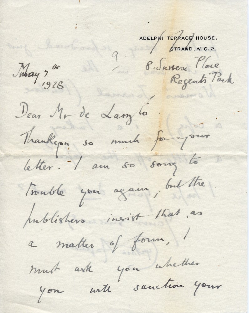 Letter from Lady Asquith to de László, Correspondence belonging to Christopher de Laszlo - Collection I, 123-0025
