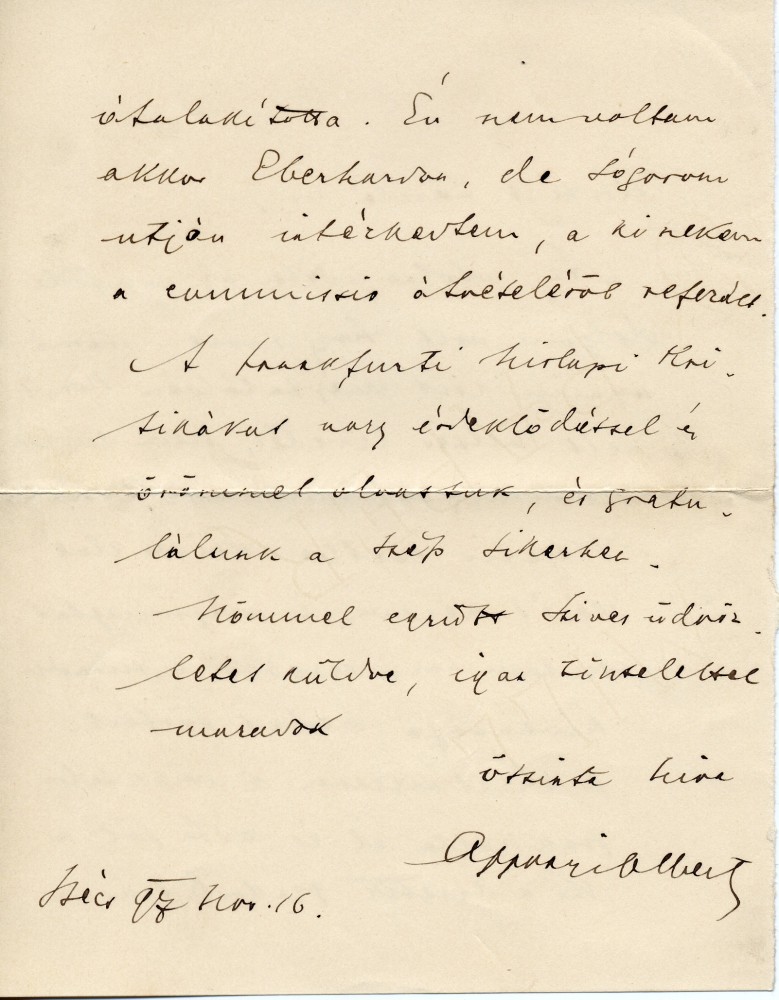 Count Albert Apponyi confirms picture [possibly 2438] packed & dispatched by person who made alterations to frame. Read review in Frankfurt newspaper, congratulates de László.