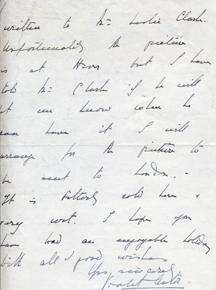 Letter from Lady Violet Astor to de László, Correspondence belonging to Christopher de Laszlo - Collection I, 123-0031