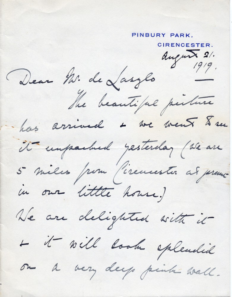 Letter from Countess Bathurst to de László, Correspondence belonging to Christopher de Laszlo - Collection I, 123-0038 Letter from Countess Bathurst to de László, Correspondence belonging to Christopher de Laszlo - Collection I, 123-0038 Letter from Countess Bathurst to de László, Correspondence belonging to Christopher de Laszlo - Collection I, 123-0038