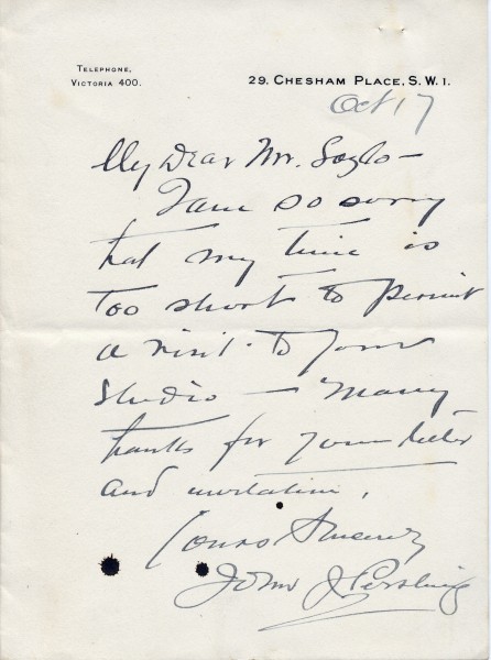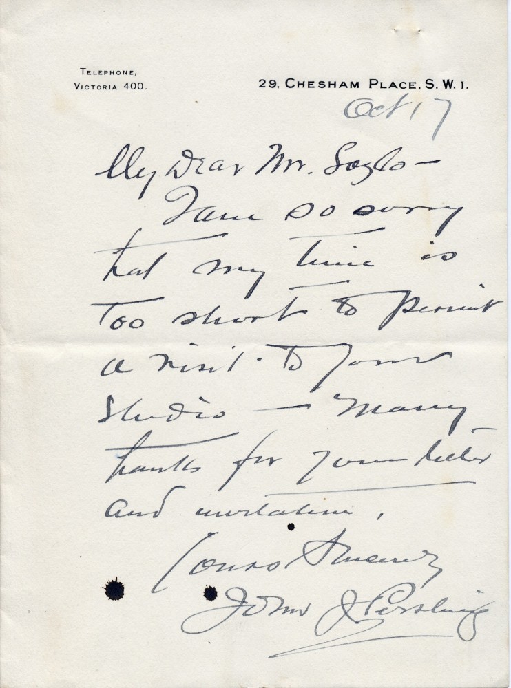 General Pershing apologises for not being able to visit de László's studio (dated "Oct 17")