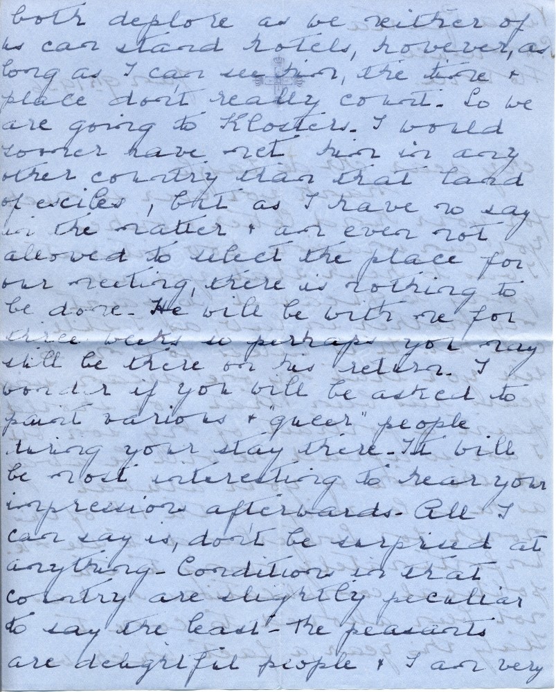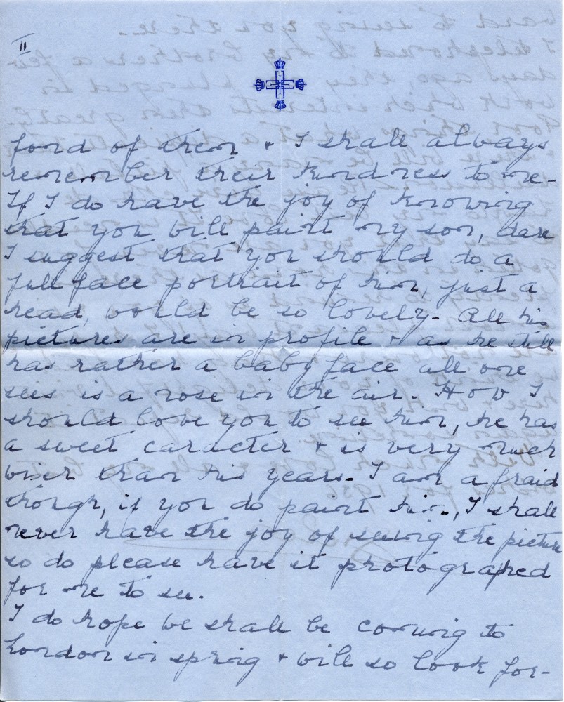 Princess Helen of Romania has heard de László will paint her mother-in-law's portrait [2961]; would like de László to paint son, Michael [4218]. Exile; "peculiar" conditions of Romania; difficult task her brother faces (see fn 4 in transcription)