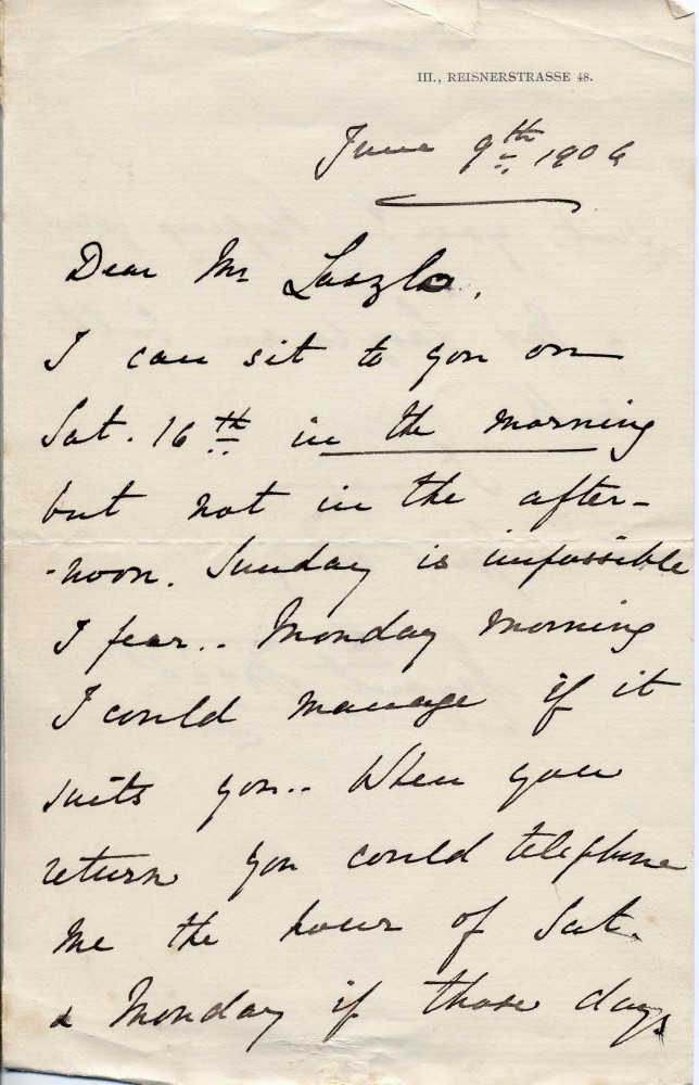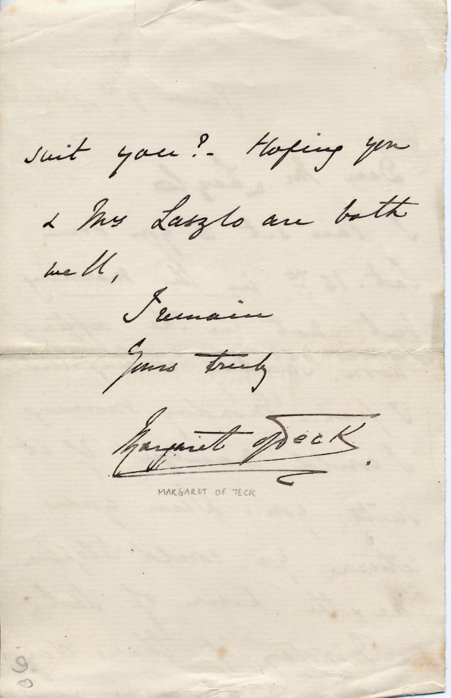 Letter from the Duchess of Teck to de László arranging sittings for her portrait [3902] (DLA123-0125 is a duplicate of this item)