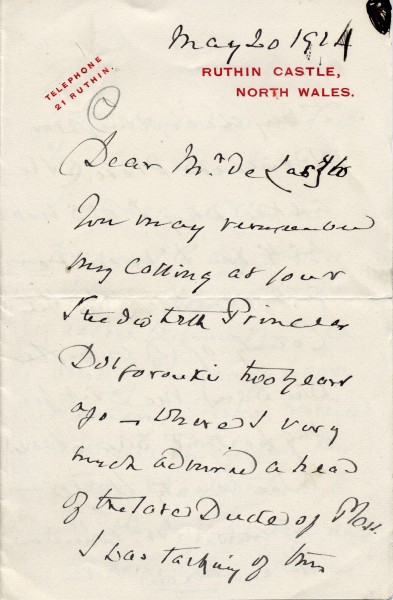 Colonel Cornwallis-West wishes to commission de László to paint his portrait for Denbigh's County Hall [111036]