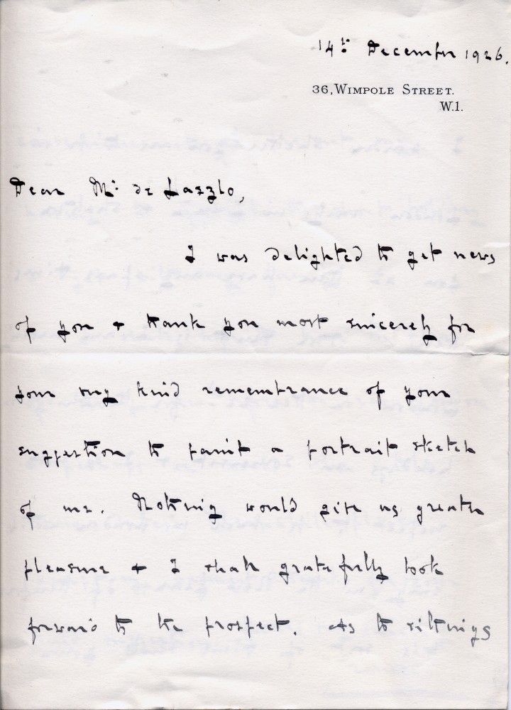Letter from Lord Cromer to de László regarding sittings for portrait sketch [112319]. Cromer was painted in 1927; a first version was rejected in favour of the finished picture [4263] (Duplicate item, see also DLA123-0114)