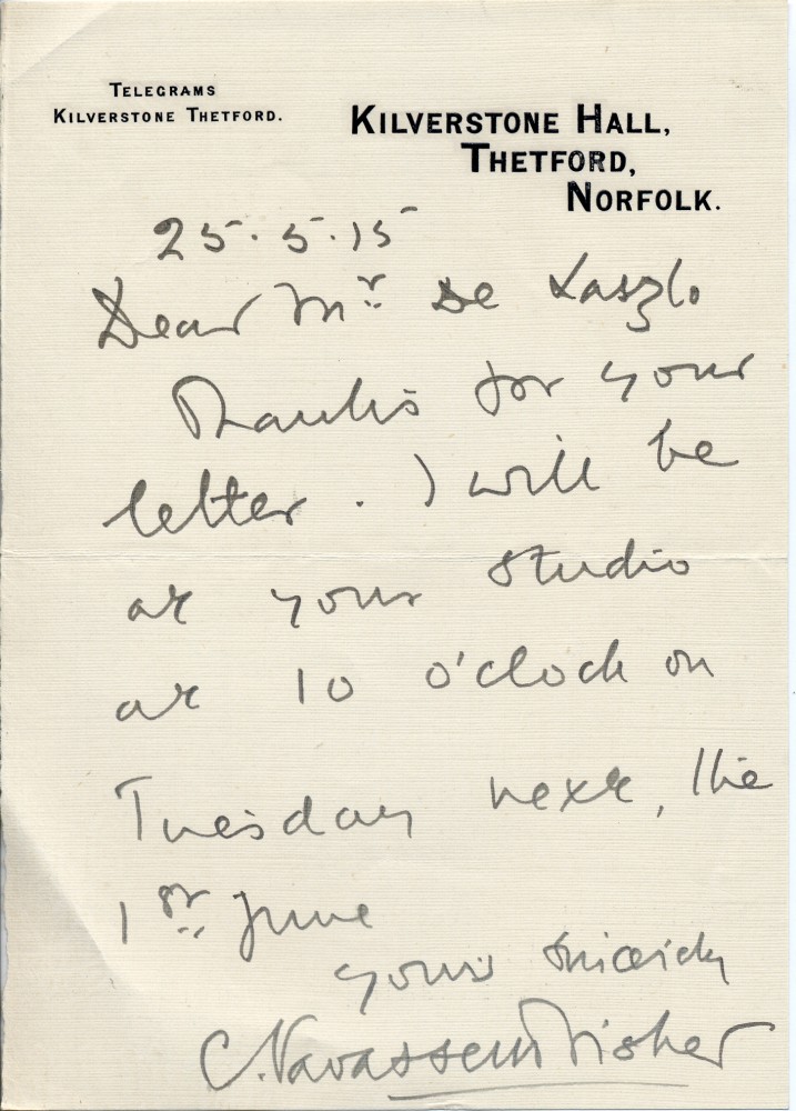 Lord Fisher confirms his appointment at de László's studio [111035]
