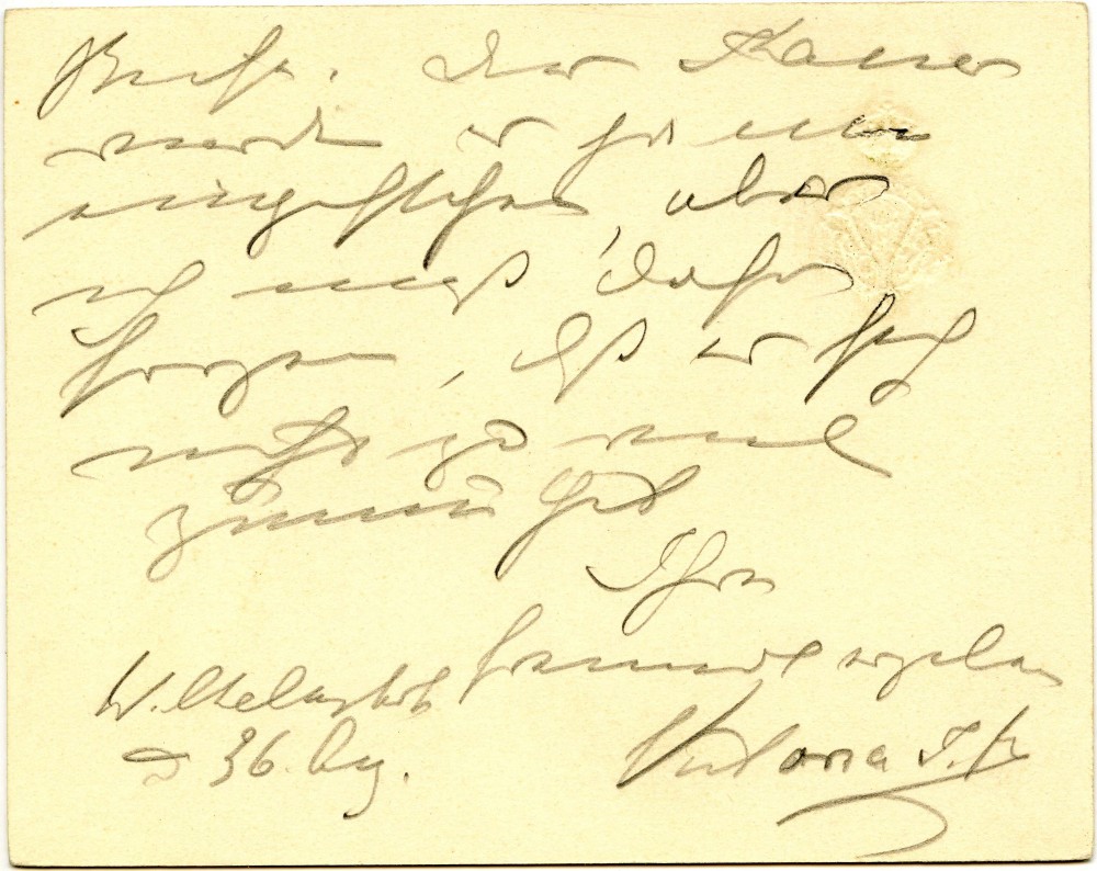 Letter from Empress Auguste Victoria to say that today's meeting with the Kaiser should be brief as he needs rest. From Wilhelmshöhe, when Kaiser Wilhelm stood for equestrian portrait [4952]
