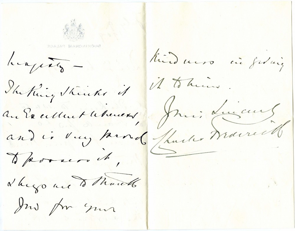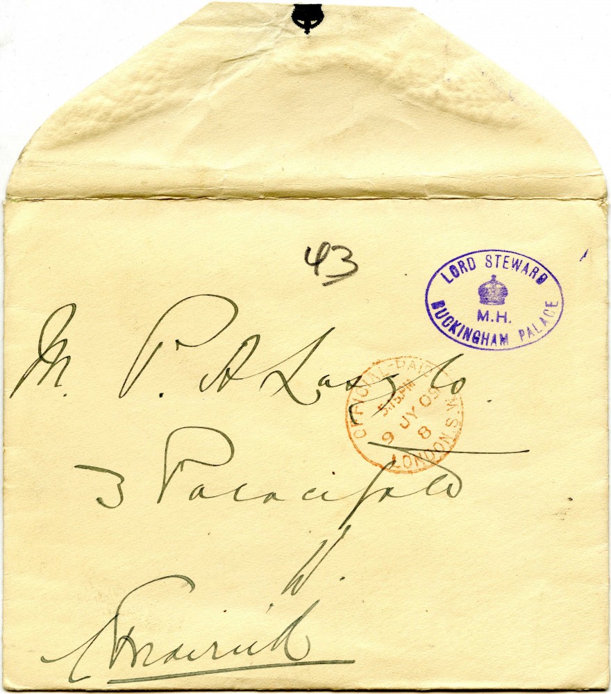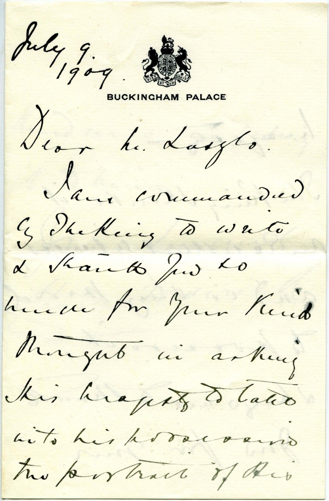 Letter from the Lord Steward's office, Buckingham Palace thanking de László on behalf of King Edward VII for the portrait [7705]. "The King thinks it an excellent likeness, and is very proud to possess it"