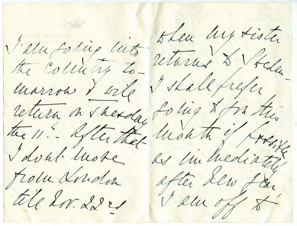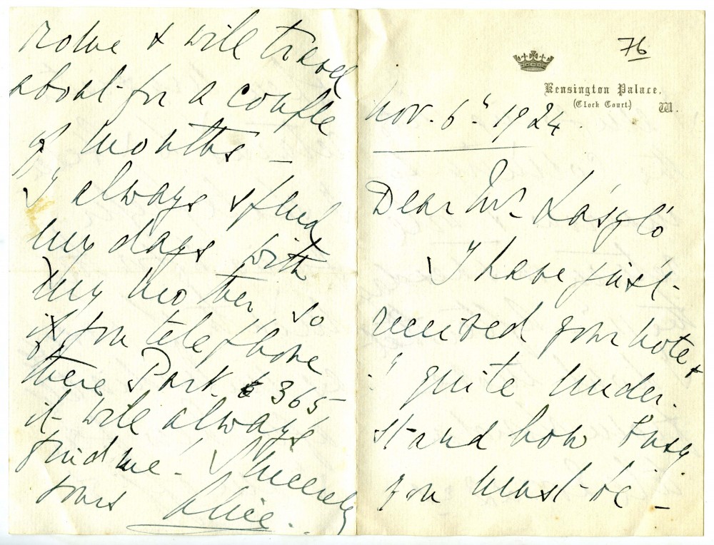 Letter from Princess Alice of Greece to de László concerning travel plans/sittings