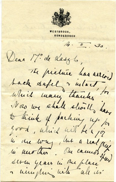 Correspondence belonging to Christopher de Laszlo - Collection I, 123-0162 Correspondence belonging to Christopher de Laszlo - Collection I, 123-0162