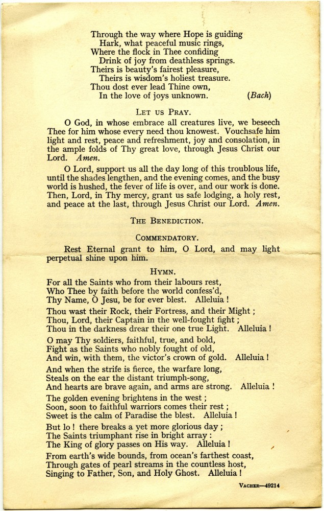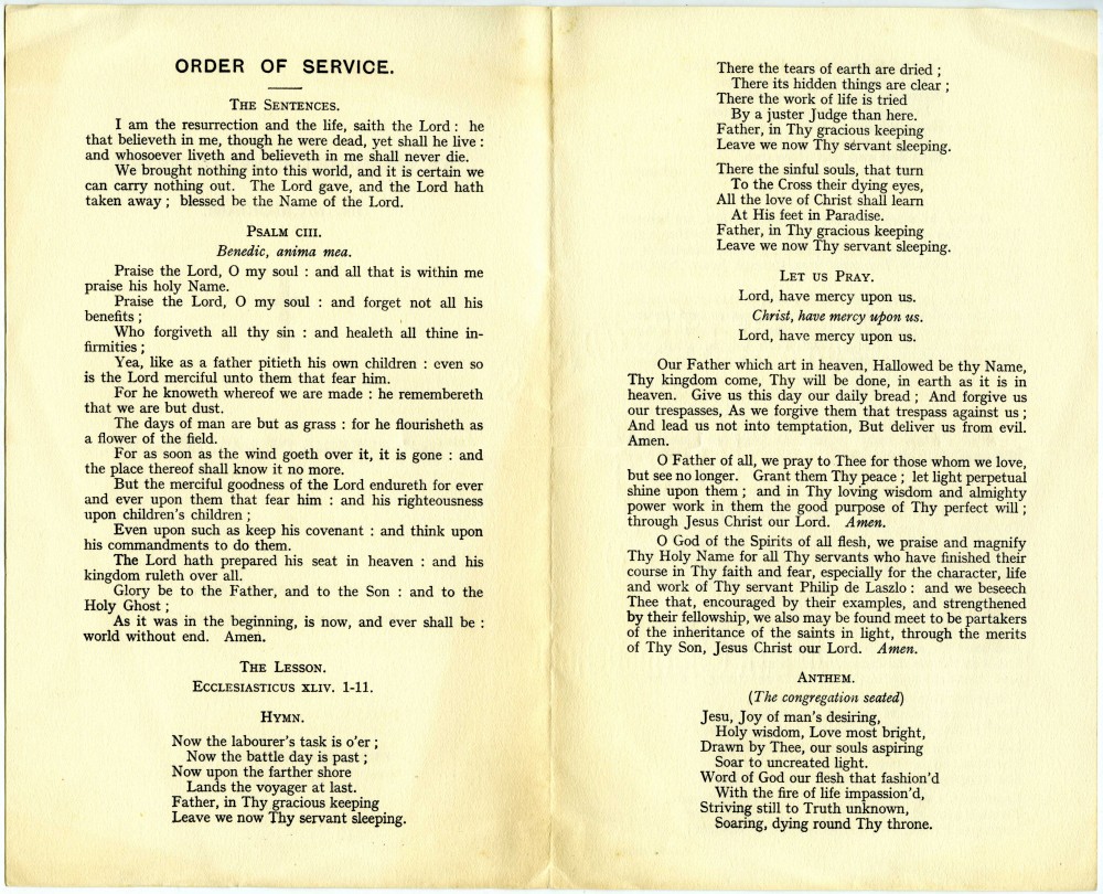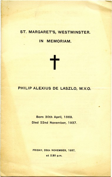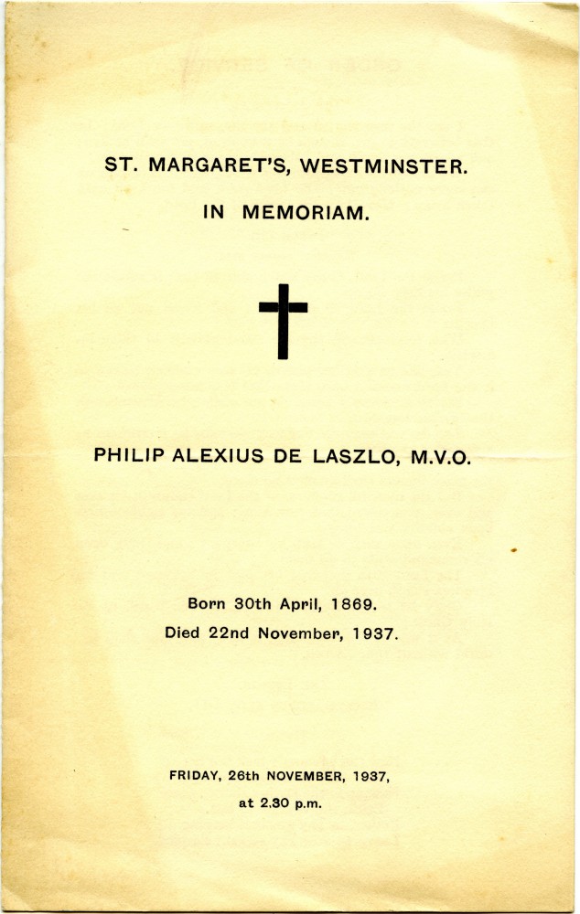Order of Service for de László's Funeral Service held on 26 November 1937