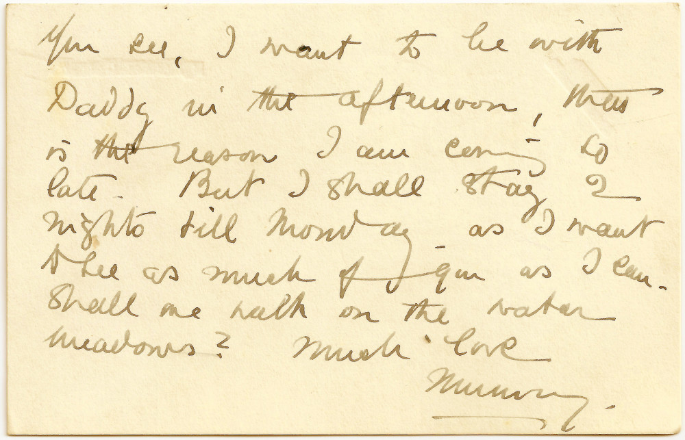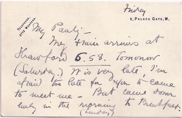 Letter from Lucy to Paul de Laszlo explaining why she will be visiting so late as she wants to visit de László [in internment]