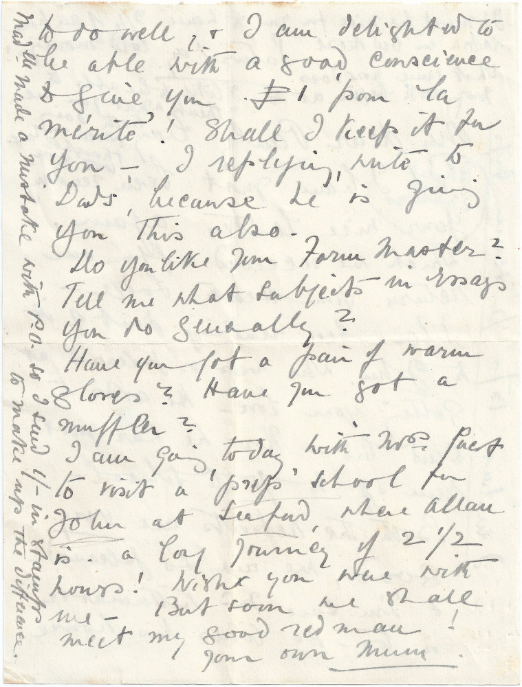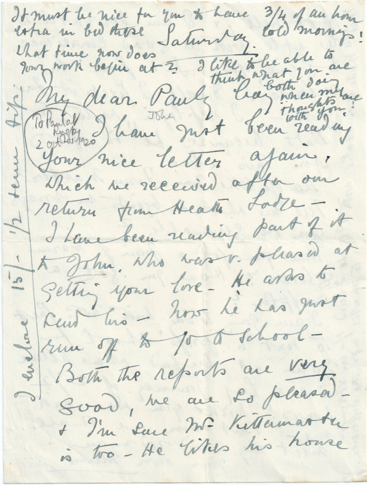 Letter from Lucy to Paul de Laszlo with general family news having returned from Heath Lodge [date added in pencil by another hand]
