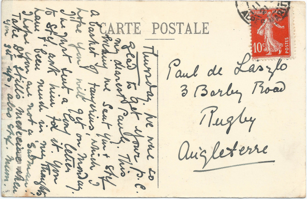 Postcard from Lucy to Paul de Laszlo sent whilst on holiday in Menton [1921]