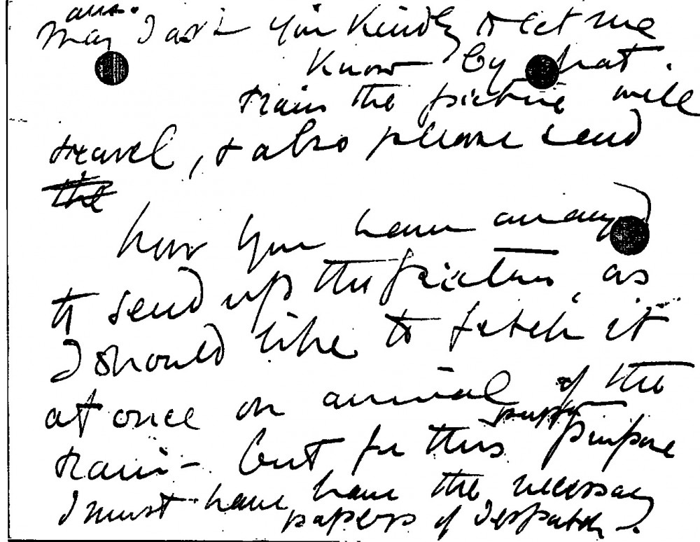 Transportation of the Duchess of Northumberland’s picture [6841] for de László's exhibition (French Gallery, June 1923). Item includes draft reply in de László's hand.