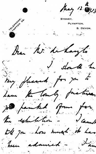 Lady Rose Leveson Gower agrees to lend her portrait [5325] to de László's exhibition (French Gallery, June 1923). Collection/transportation.