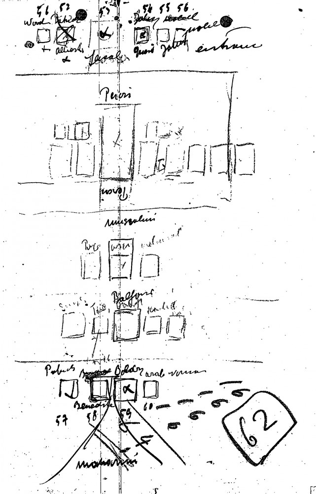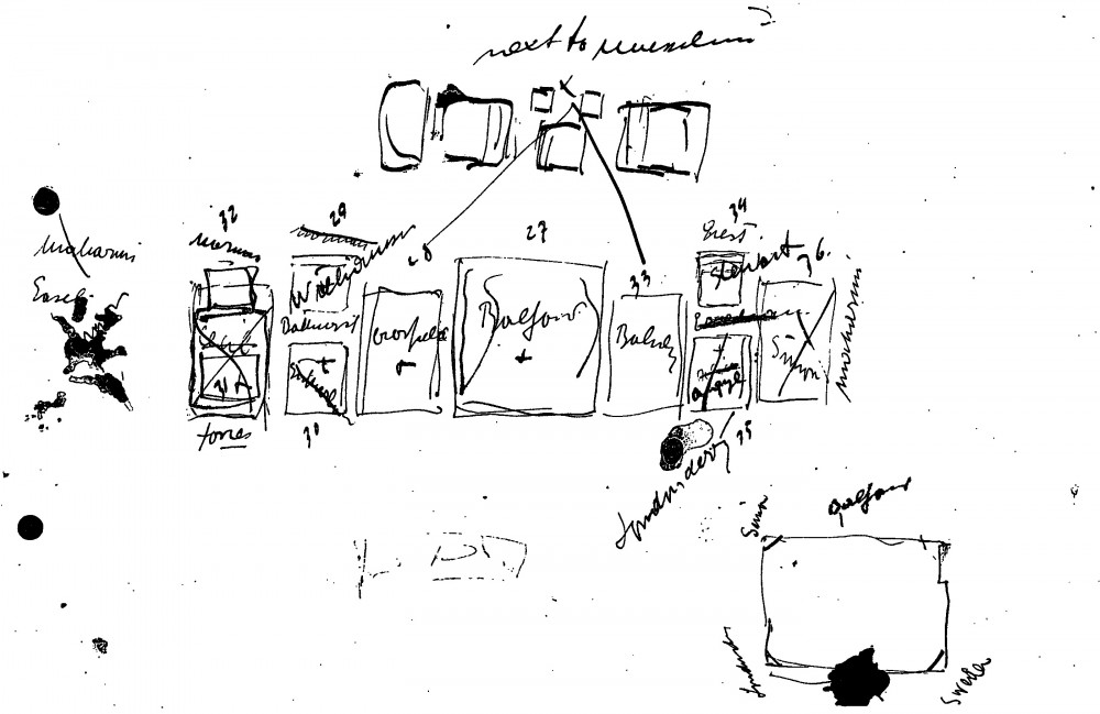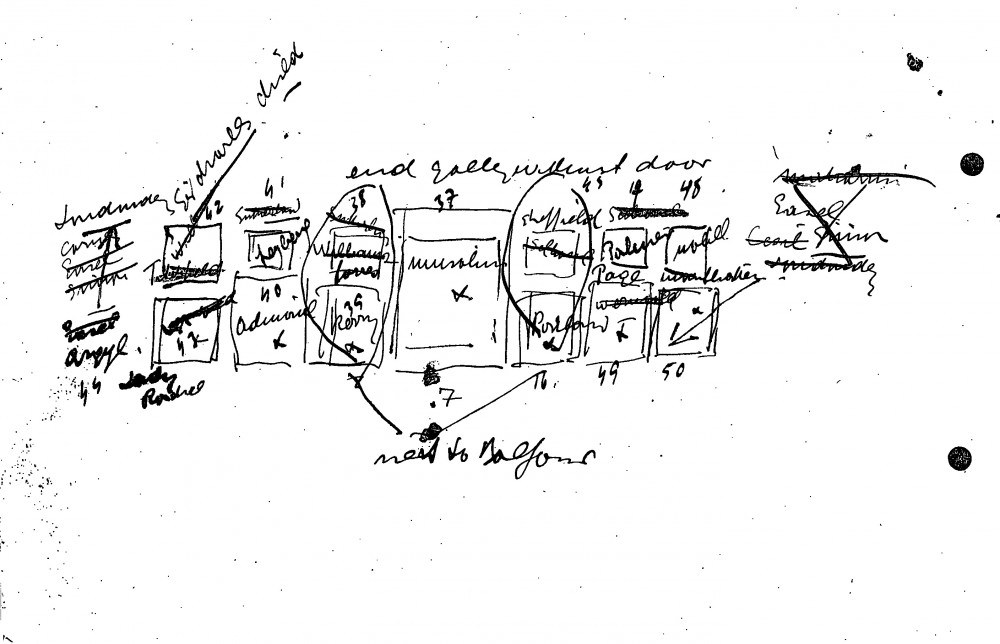 De László's hand-drawn plan for his exhibition (French Gallery, June 1923).