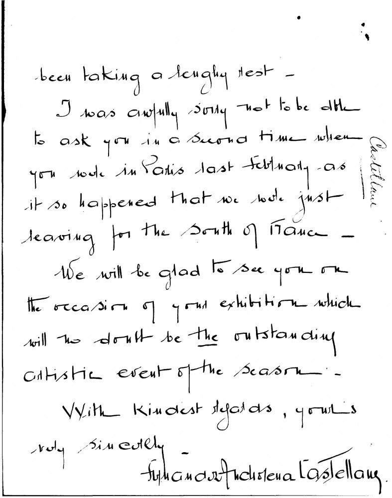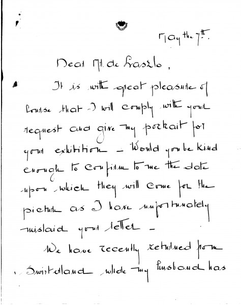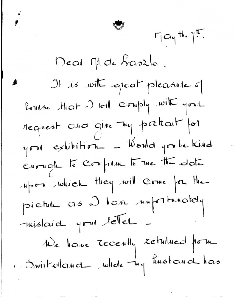 Florinda, Comtesse de Castellane agrees to lend her portrait [3786] to de László's forthcoming exhibition in Paris (Charpentier, 1931)