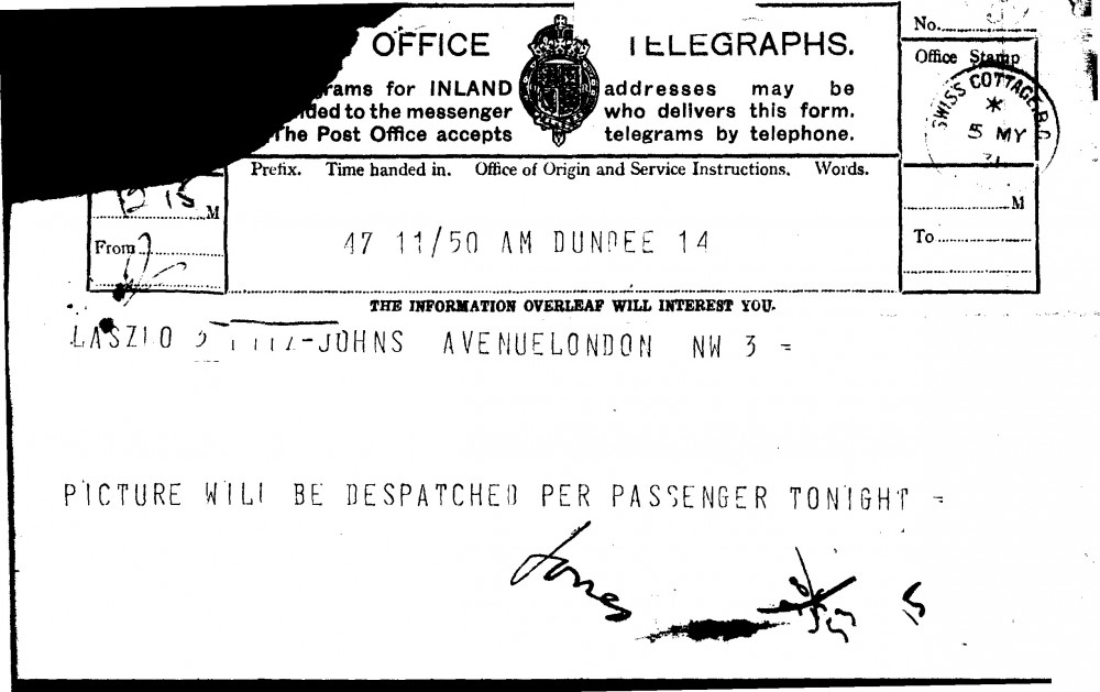 Telegram confirming the despatch by passenger train of de László's picture, "The Horses of St Mark's" [11636]