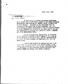 Lady Davson is presently away, returning the end of the month; de László's letter of 13 April [1931] will be put before her as soon as possible.