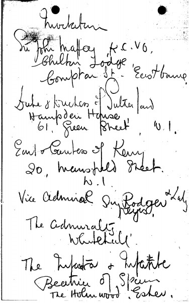 Undated list by Lucy de László of those invited to a private view at the French Gallery.