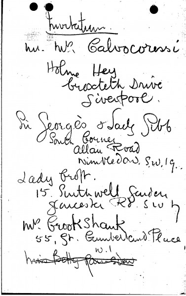 Undated list by Lucy de László of those invited to a private view at the French Gallery.
