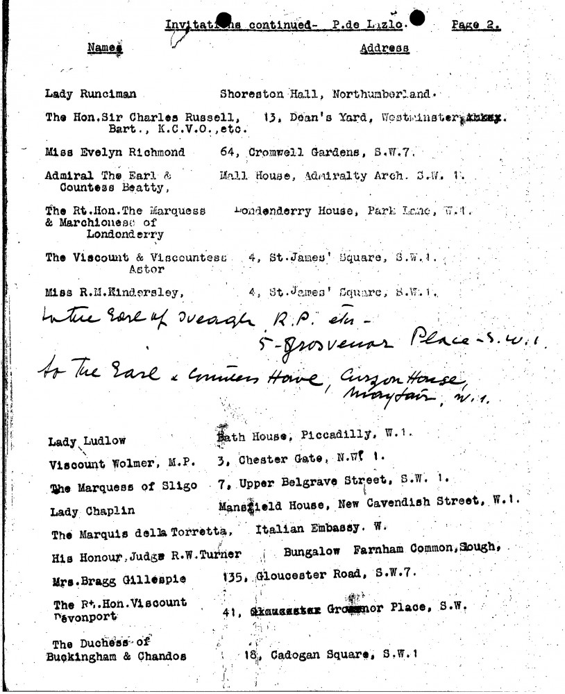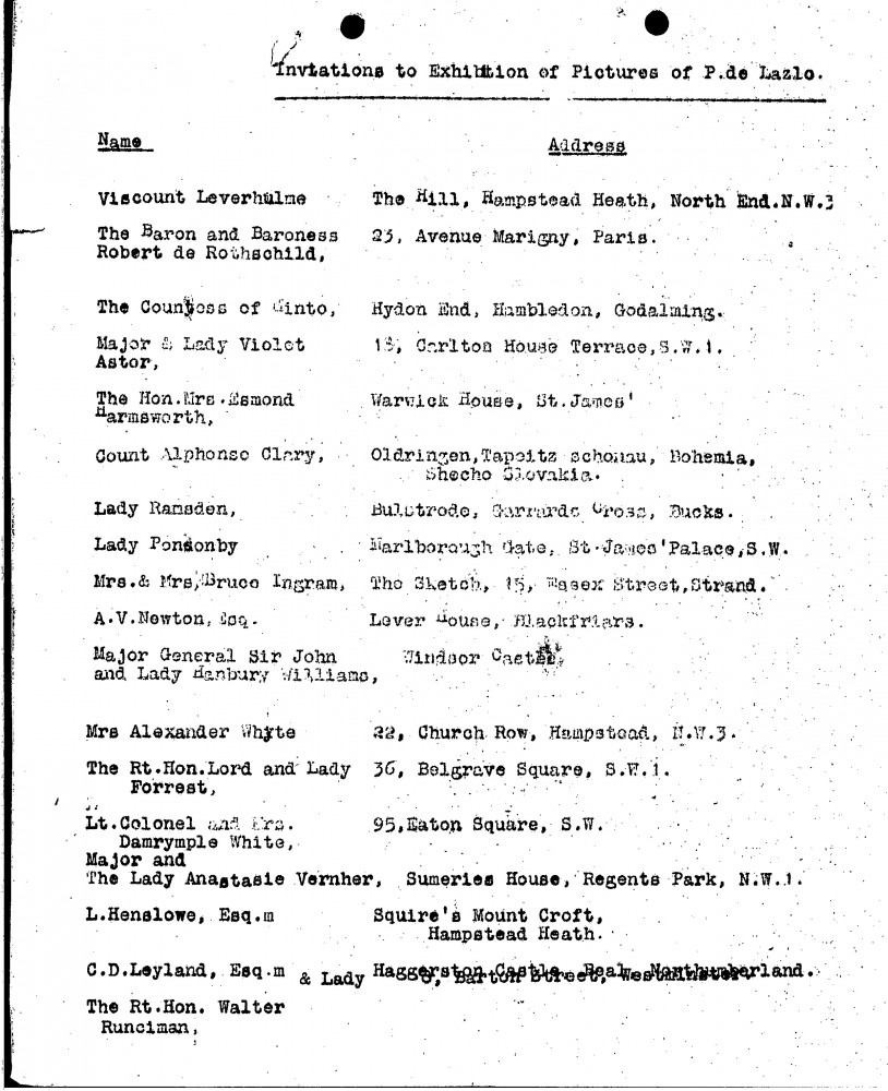 Exhibition invitation list (French Gallery, June 1924) [see also DLA107-0293 and DLA107-0292].