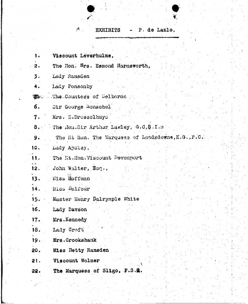 Typed list of proposed exhibits pp 1-2; 41 exhibits listed (French Gallery, June 1924).