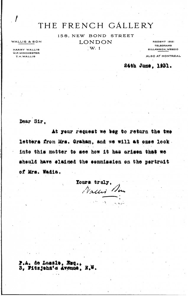Concerning an issue with the commission on Mrs Wadia's portrait [10061] (see related item DLA114-0068).