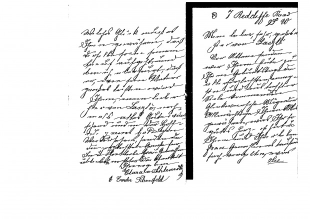 Clara von Schleinitz and her niece congratulate de László on his birthday. They thank the artist and Lucy for their help in "get[tting] us out of the troubling situation".