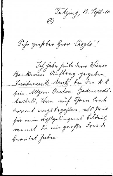Kühlmann has transferred 2000 Marks to de László in settlement for his portrait [3004].