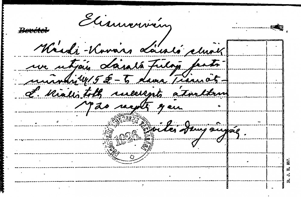 Receipt from Gábor Domján, Secretary of the Society of Independent Artists, to de László, Hungarian & German Letters 1930-1931, 032-0026