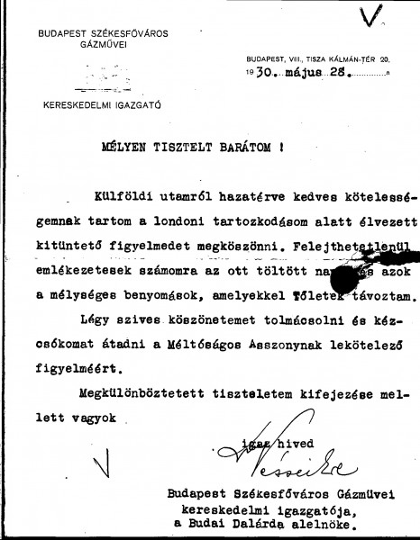 Ede Véssei thanks de László and Lucy for their hospitality in London.