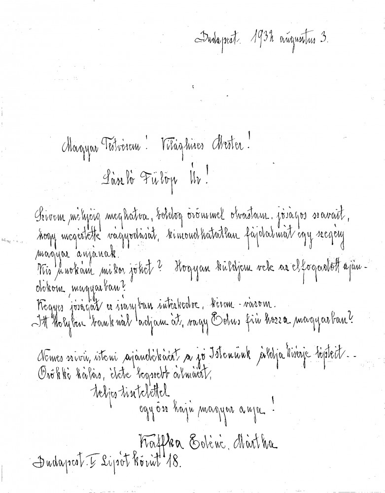 - Kaffka, Mrs Edéné [née Mártha, maiden name unknown]