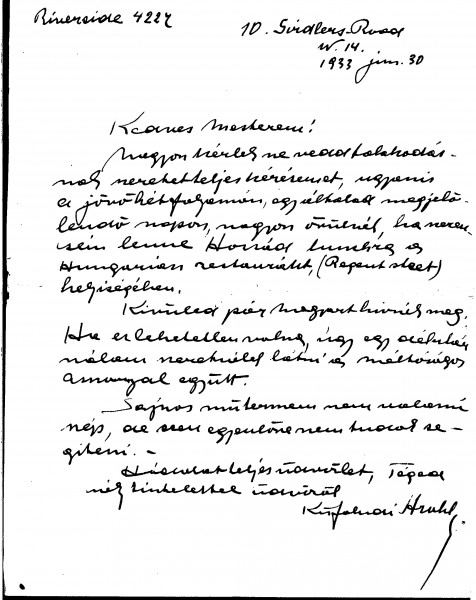 Letter from Zsigmond Kisfaludi Strobl to de László, Hungarian & German Letters 1933, 034-0057