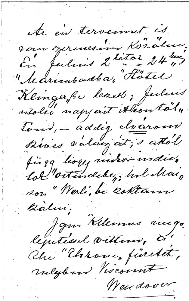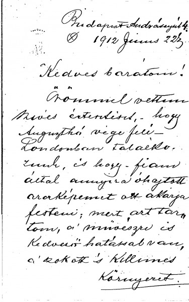 Plans to meet in London in August when Harkányi's portrait is to be painted [111091][5572][5575]. Thanks de László for sending a copy of “The Throne” with its illustration of Viscount Wendover's portrait [7718].