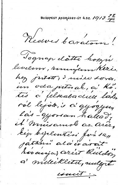 Reference to de László’s leg fracture. The Műcsarnok needs de László's signature on the form accompanying the portrait [111091], which is to be exhibited. Where should the reproduction be sent?