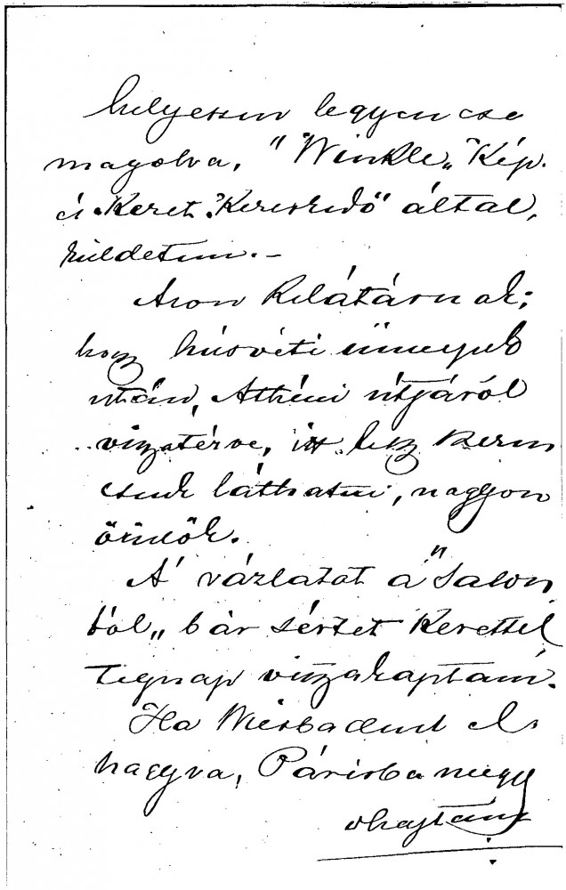 Arrangements to lend his portrait [111091] to the Hungarian Fine Art Society's exhibition (Műcsarnok, Spring 1913). Reproduction is being sent off to Wiesbaden. Return of study portrait [5572]—with damaged frame—from exhibition (Nemzeti Szalon, Winter 1912).